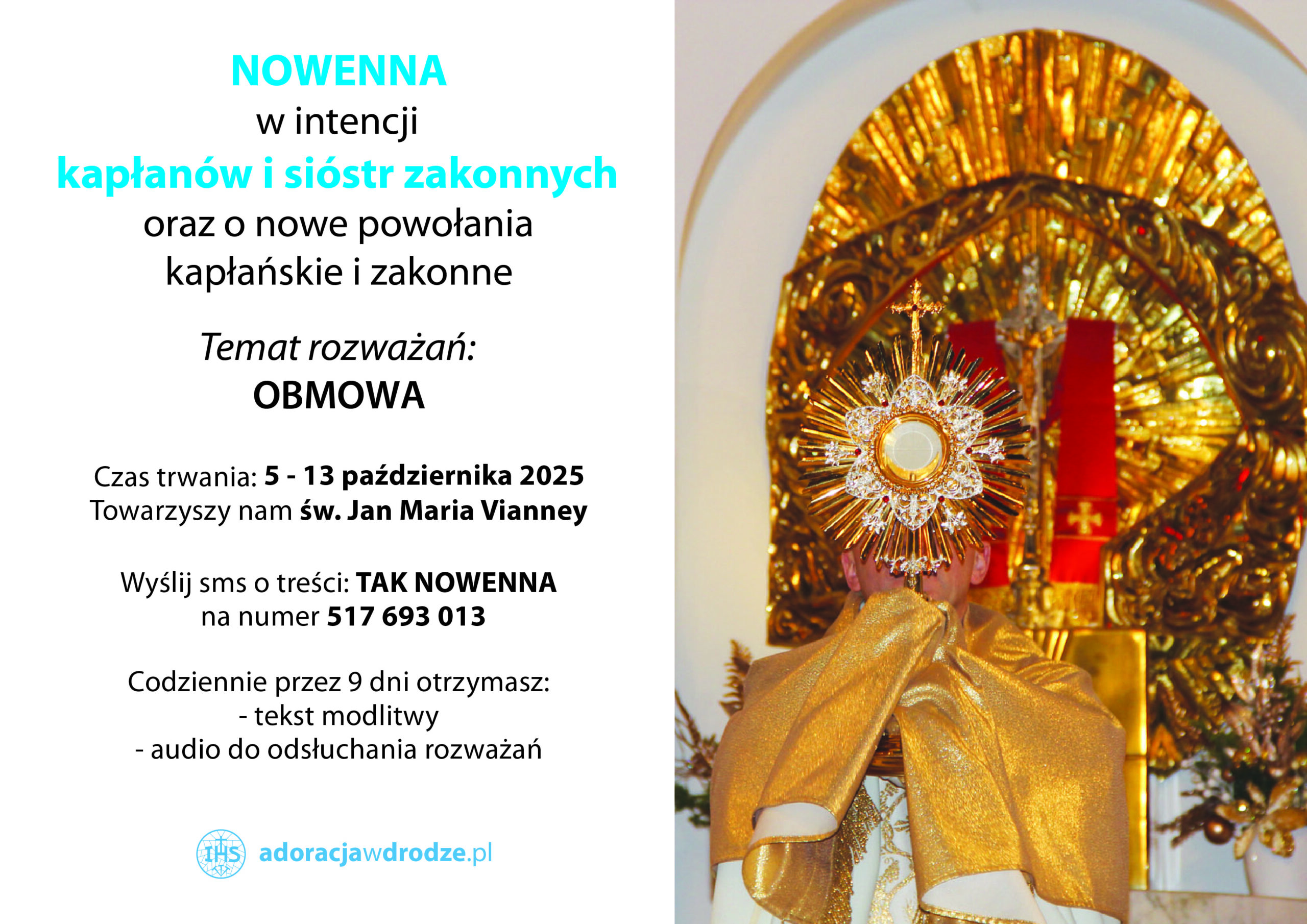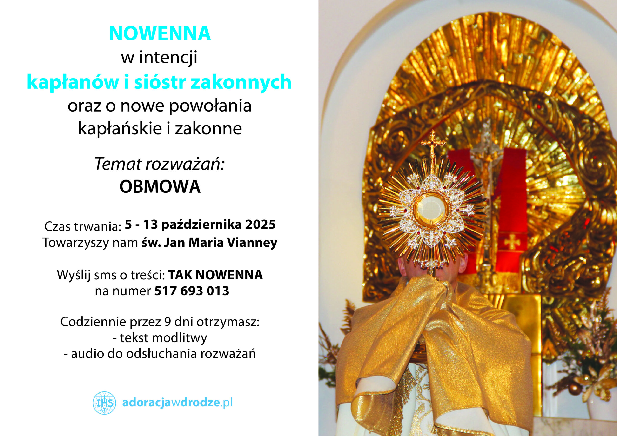 Kochani w dn. 05-13 października 2025 r. rozpoczynamy kolejną nowennę za Kapłanów, Zakonników, Misjonarzy, Siostry Zakonne, Osoby Konsekrowane, Braci Zakonnych oraz o powołania kapłańskie i zakonne. I tym razem towarzyszyć nam będą słowa z kazań św. Jana Maria Vianney.
